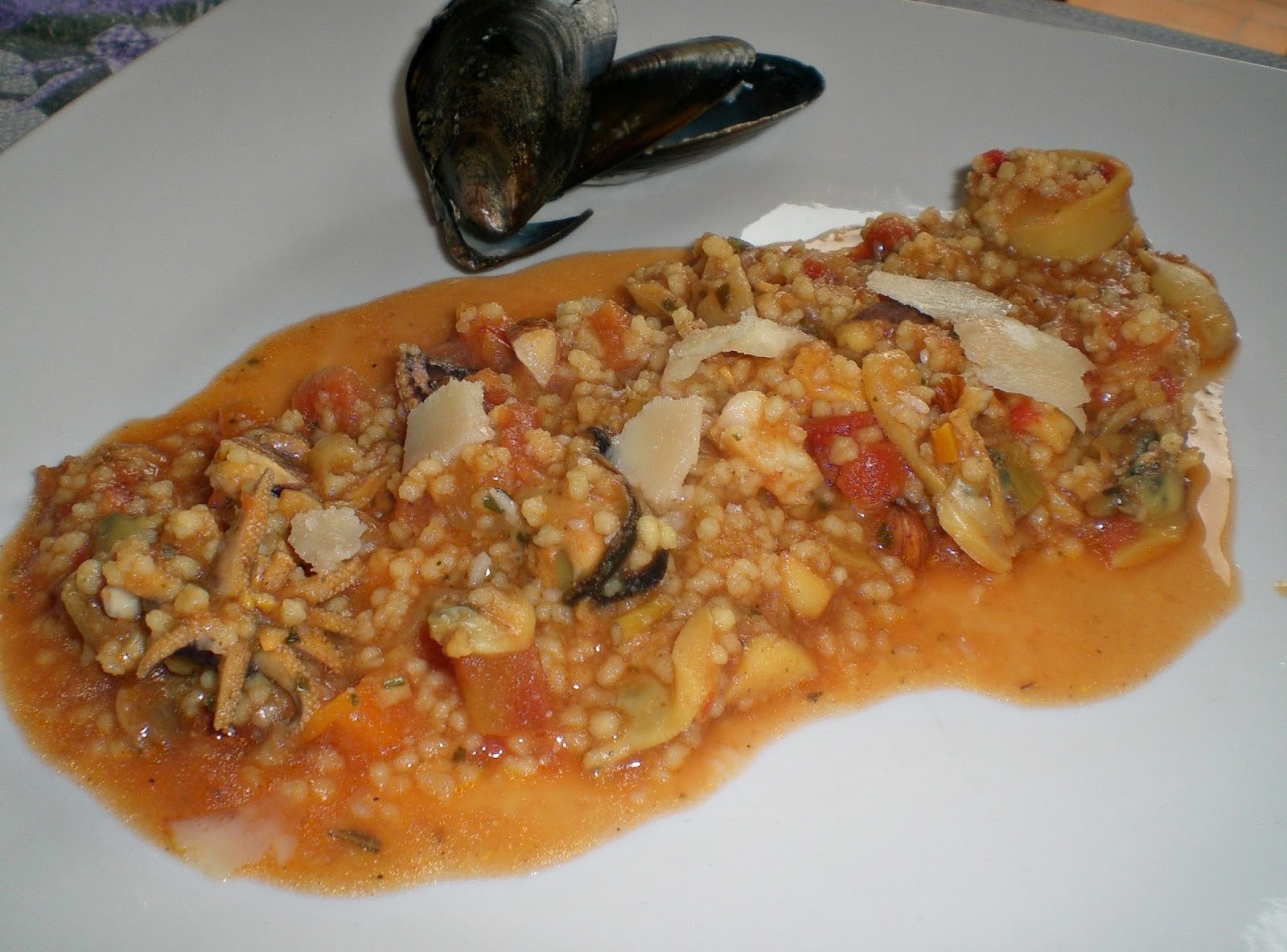 1. condimento di mare: preparato per zuppa di pesce, cui abbiamo aggiunto cozze e mazzancolle
